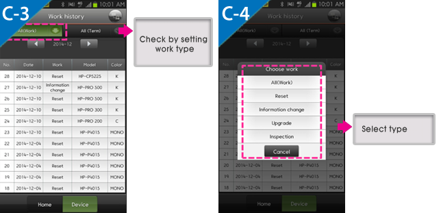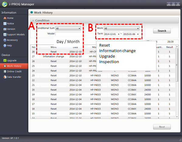 | ▶ You can set the work type by Reset or Information Change or Upgrade, and check the details efficiently. |