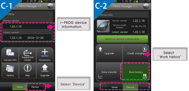 | * i-PROG Mobile Manager 1) Install i-PROG Mobile Manager Google play store -> Search 'i-PROG' -> Download application 2) Connect a machine to Mobile Manager In case of Mobile manager, machine is connected by bluetooth. To check details about how to connect to bluetooth, please click the link next. [ ☞ Check manual 'i-PROG Mobile Manager : Way to connect i-PROG'] |